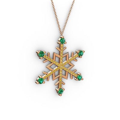 Yeşil kuvars ve sitrin 14 ayar rose altın kolye (40 cm gümüş rolo zincir)