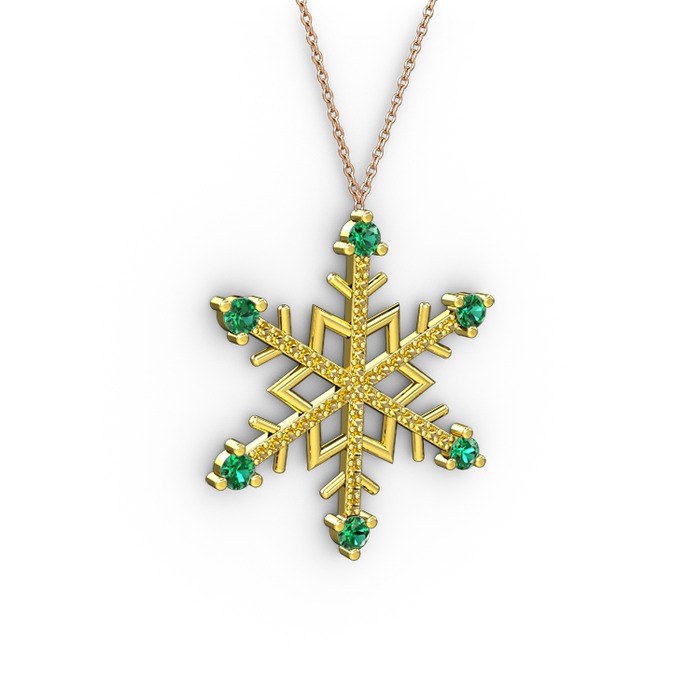 Yeşil kuvars ve sitrin 18 ayar altın kolye (40 cm gümüş rolo zincir)