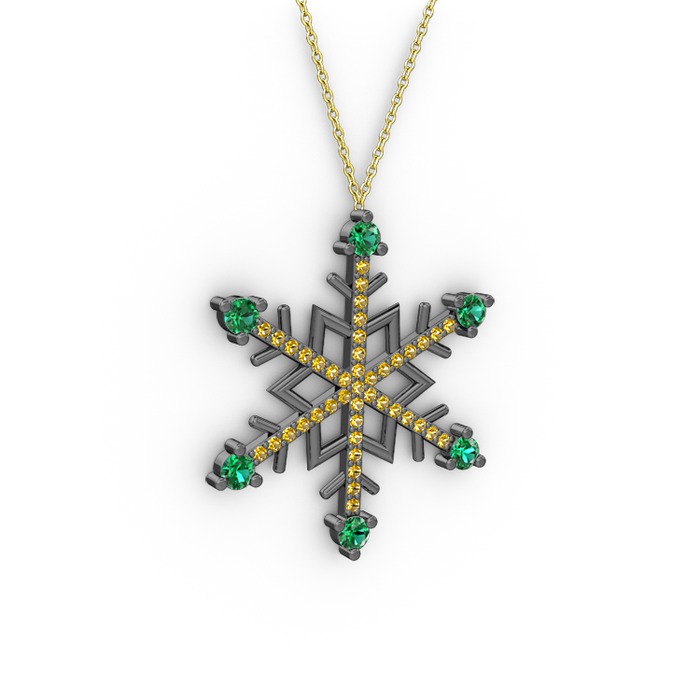 Yeşil kuvars ve sitrin 925 ayar siyah rodyum kaplama gümüş kolye (40 cm altın rolo zincir)