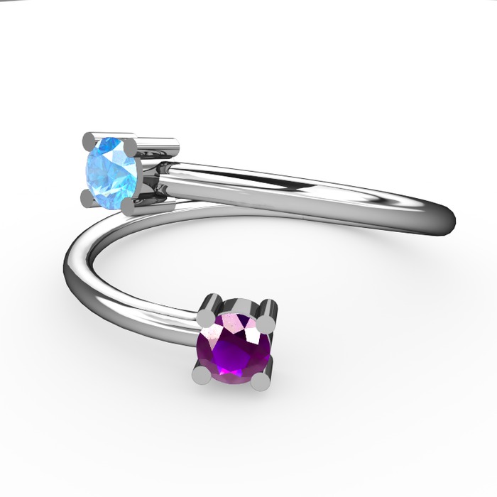 Akuamarin ve ametist 14 ayar beyaz altın yüzük