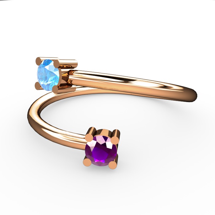 Akuamarin ve ametist 18 ayar rose altın yüzük