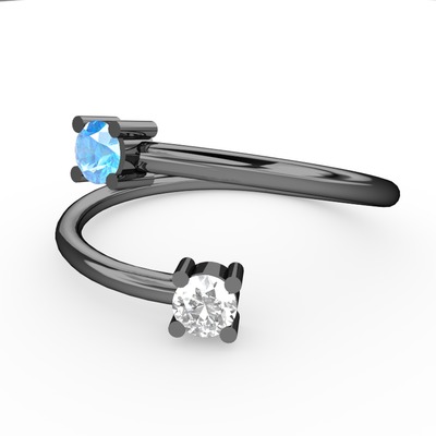 Akuamarin ve beyaz zirkon 925 ayar siyah rodyum kaplama gümüş yüzük