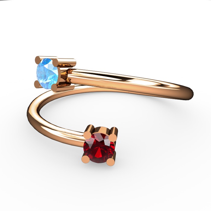 Akuamarin ve garnet 18 ayar rose altın yüzük
