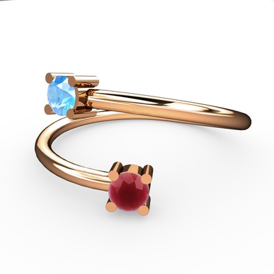 Akuamarin ve kök yakut 8 ayar rose altın yüzük