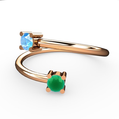 Akuamarin ve kök zümrüt 14 ayar rose altın yüzük