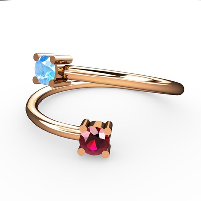 Akuamarin ve rodolit garnet 18 ayar rose altın yüzük