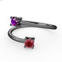 Ametist ve kök yakut 925 ayar siyah rodyum kaplama gümüş yüzük