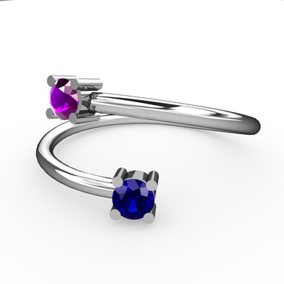 Ametist ve lab safir 14 ayar beyaz altın yüzük