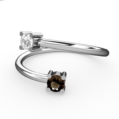 Beyaz zirkon ve dumanlı kuvars 18 ayar beyaz altın yüzük