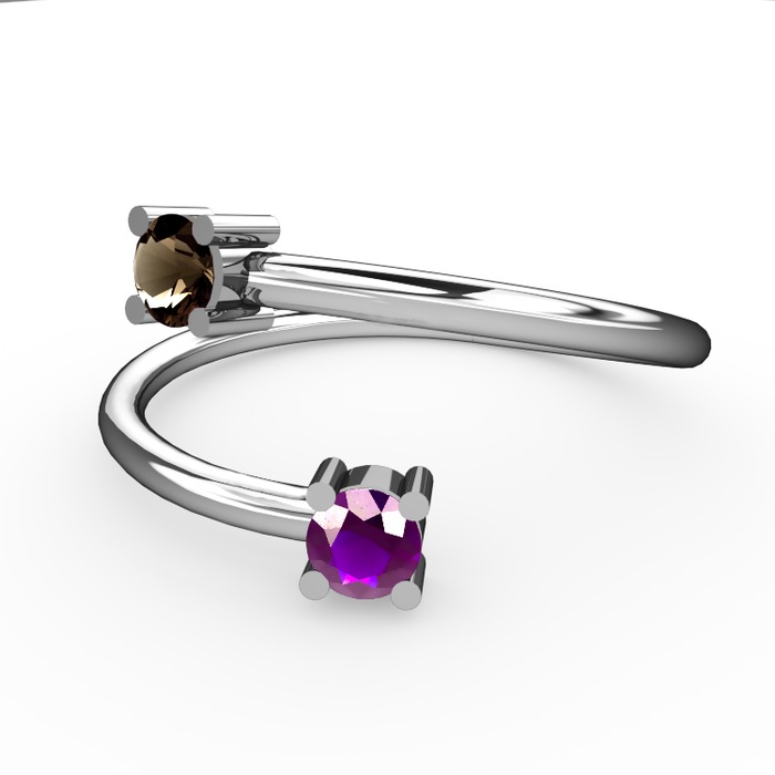 Dumanlı kuvars ve ametist 925 ayar gümüş yüzük