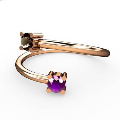 Dumanlı kuvars ve ametist 925 ayar rose altın kaplama gümüş yüzük
