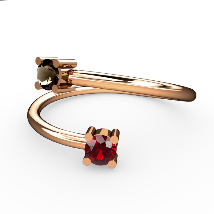 Dumanlı kuvars ve garnet 14 ayar rose altın yüzük