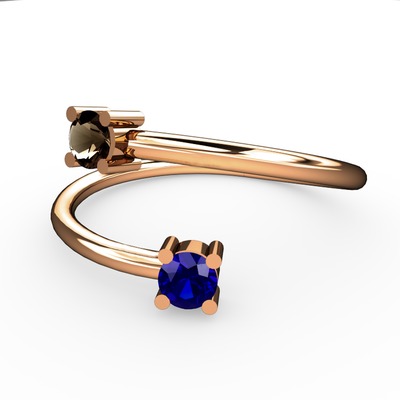 Dumanlı kuvars ve lab safir 18 ayar rose altın yüzük