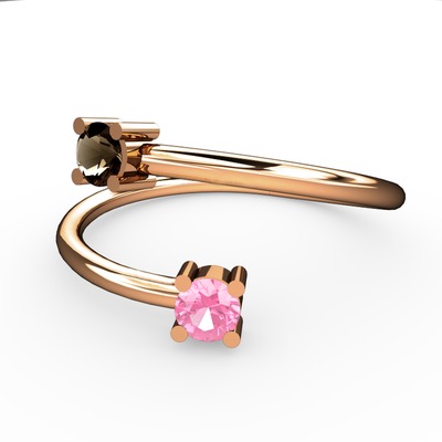 Dumanlı kuvars ve pembe kuvars 8 ayar rose altın yüzük