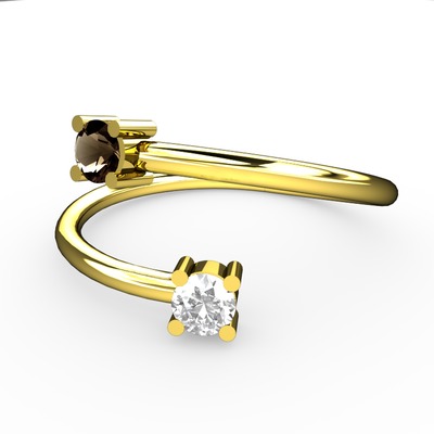 Dumanlı kuvars ve pırlanta 925 ayar altın kaplama gümüş yüzük (0.24 karat)