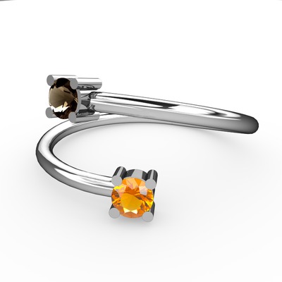 Dumanlı kuvars ve sitrin 18 ayar beyaz altın yüzük