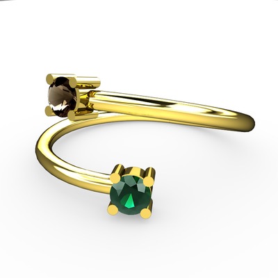Dumanlı kuvars ve yeşil kuvars 18 ayar altın yüzük