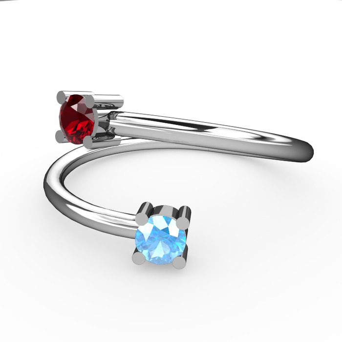 Garnet ve akuamarin 14 ayar beyaz altın yüzük