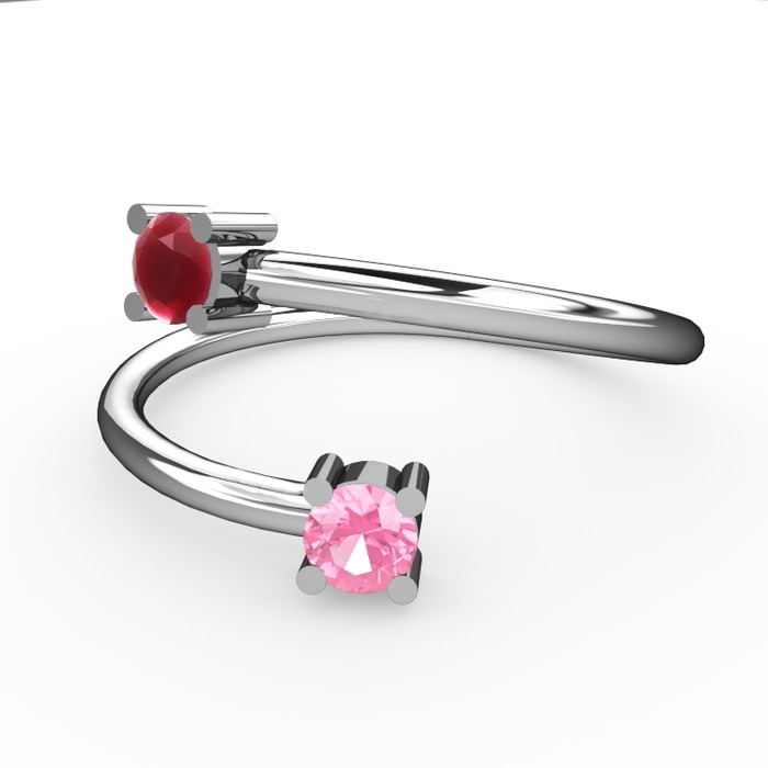 Kök yakut ve pembe kuvars 18 ayar beyaz altın yüzük