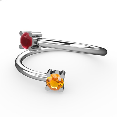 Kök yakut ve sitrin 14 ayar beyaz altın yüzük