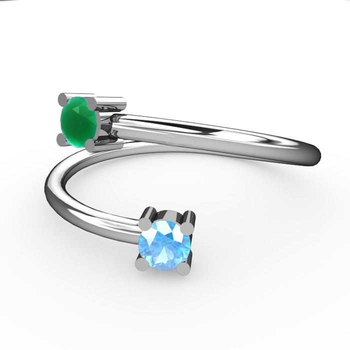 Kök zümrüt ve akuamarin 14 ayar beyaz altın yüzük