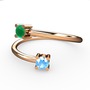 Kök zümrüt ve akuamarin 14 ayar rose altın yüzük