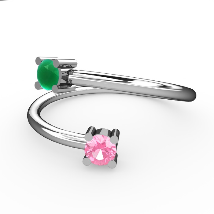 Kök zümrüt ve pembe kuvars 14 ayar beyaz altın yüzük