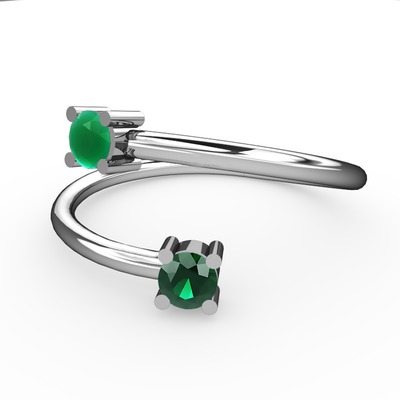 Kök zümrüt ve yeşil kuvars 8 ayar beyaz altın yüzük