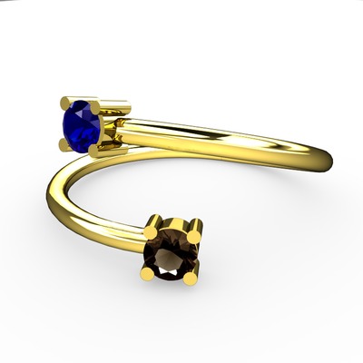 Lab safir ve dumanlı kuvars 8 ayar altın yüzük