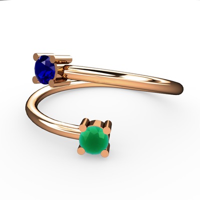 Lab safir ve kök zümrüt 14 ayar rose altın yüzük