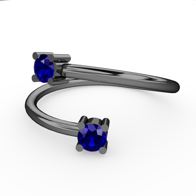 Lab safir 925 ayar siyah rodyum kaplama gümüş yüzük