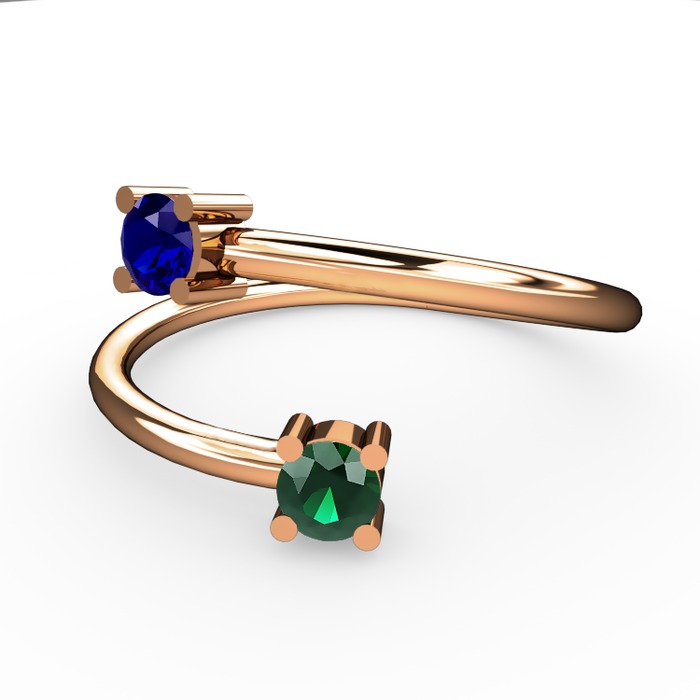 Lab safir ve yeşil kuvars 14 ayar rose altın yüzük
