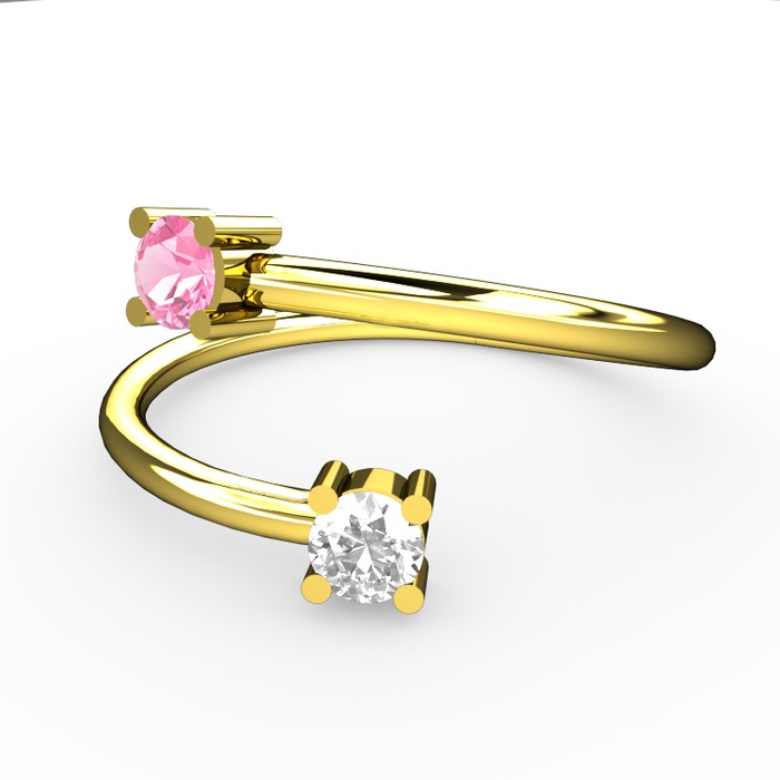 Pembe kuvars ve beyaz zirkon 14 ayar altın yüzük