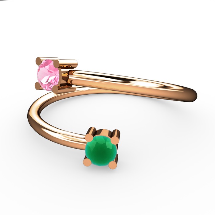 Pembe kuvars ve kök zümrüt 8 ayar rose altın yüzük