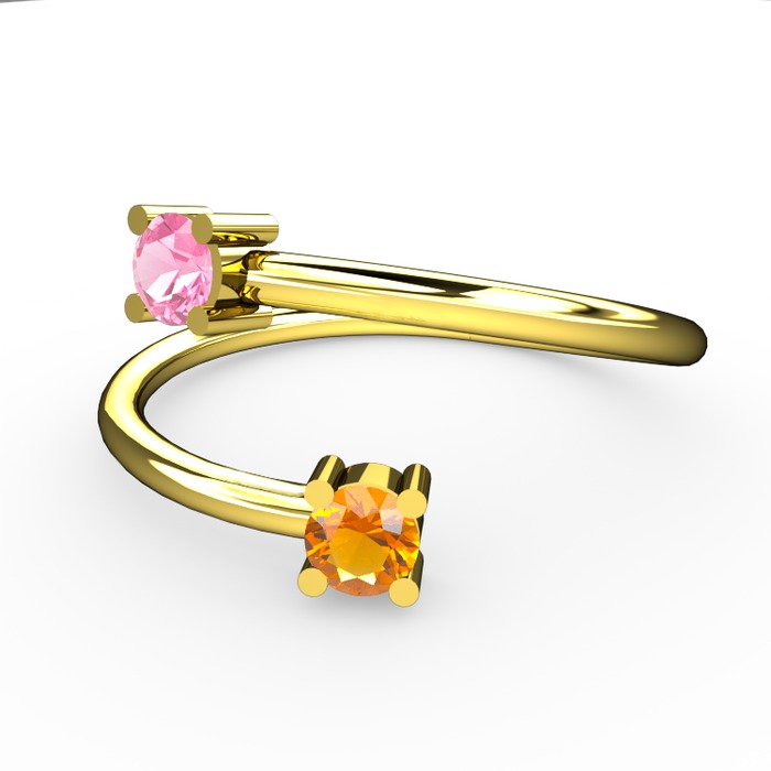 Pembe kuvars ve sitrin 18 ayar altın yüzük