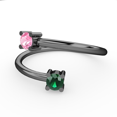 Pembe kuvars ve yeşil kuvars 925 ayar siyah rodyum kaplama gümüş yüzük