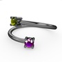 Peridot ve ametist 925 ayar siyah rodyum kaplama gümüş yüzük