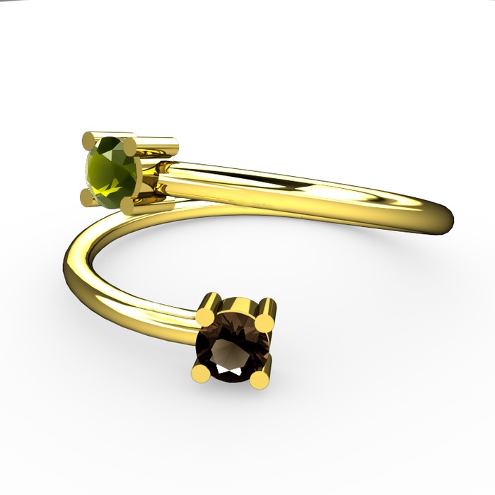 Peridot ve dumanlı kuvars 14 ayar altın yüzük