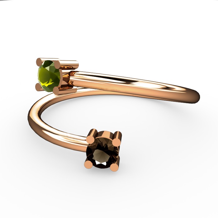Peridot ve dumanlı kuvars 14 ayar rose altın yüzük
