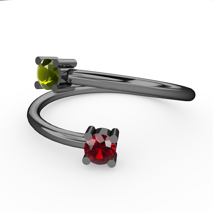 Peridot ve garnet 925 ayar siyah rodyum kaplama gümüş yüzük