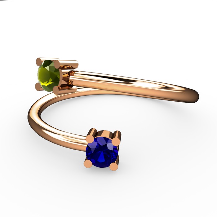 Peridot ve lab safir 925 ayar rose altın kaplama gümüş yüzük