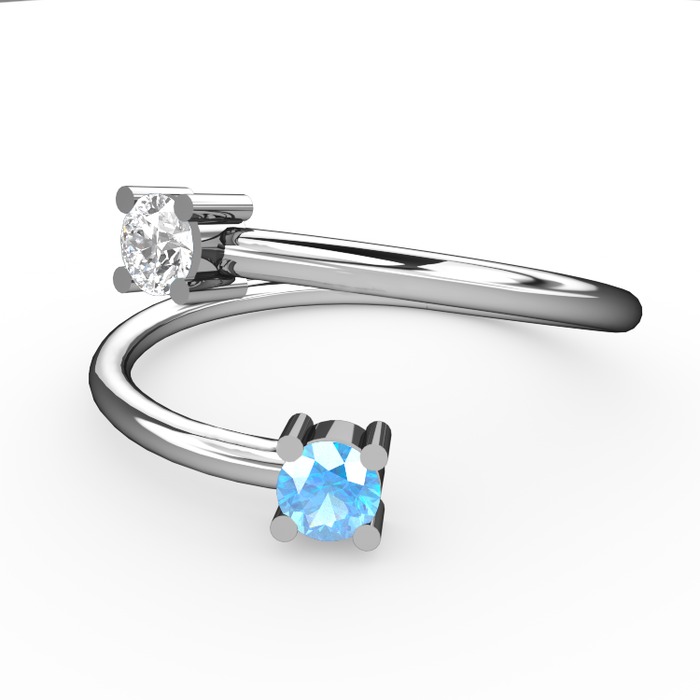 Pırlanta ve akuamarin 8 ayar beyaz altın yüzük (0.24 karat)