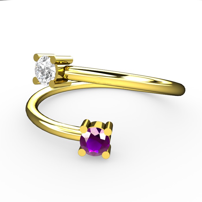 Pırlanta ve ametist 8 ayar altın yüzük (0.24 karat)