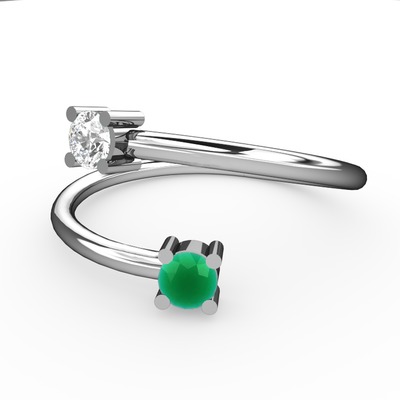 Pırlanta ve kök zümrüt 8 ayar beyaz altın yüzük (0.24 karat)