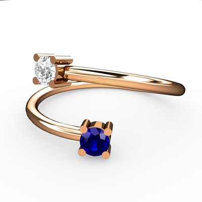 Pırlanta ve lab safir 8 ayar rose altın yüzük (0.24 karat)