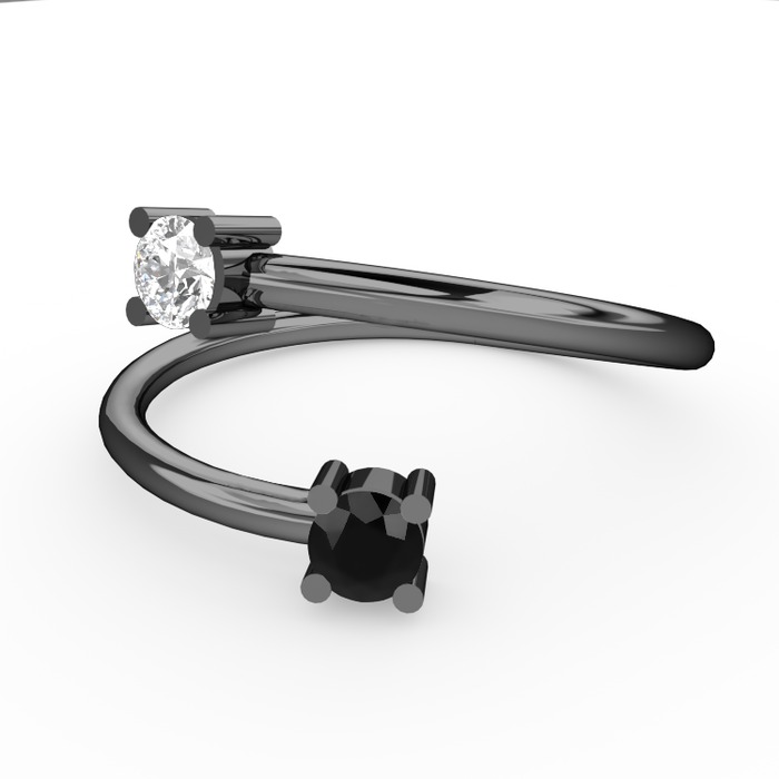 Pırlanta ve siyah zirkon 925 ayar siyah rodyum kaplama gümüş yüzük (0.24 karat)
