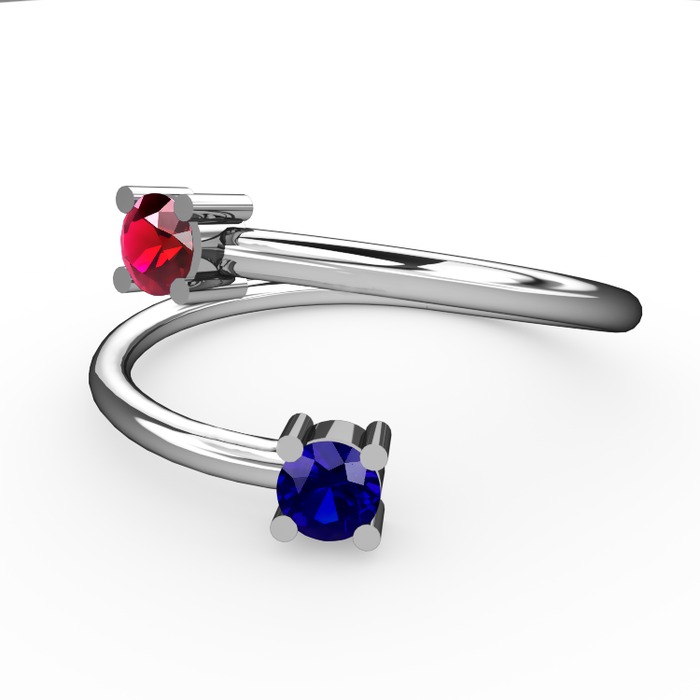 Rodolit garnet ve lab safir 8 ayar beyaz altın yüzük
