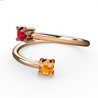Rodolit garnet ve sitrin 18 ayar rose altın yüzük