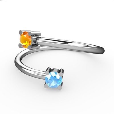 Sitrin ve akuamarin 8 ayar beyaz altın yüzük
