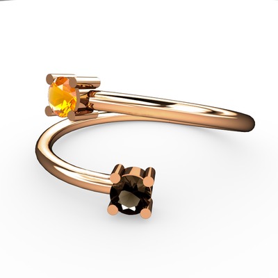 Sitrin ve dumanlı kuvars 14 ayar rose altın yüzük